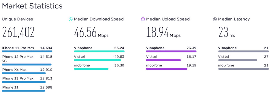 Đây là kết quả được Speedtest tiến hành tính toán dựa trên những lượt đo kiểm do chính những người dùng sử dụng các mạng viễn thông lớn tại Việt Nam thực hiện đo kiểm, đánh giá bằng thời gian thực thông qua ứng dụng Speedtest trên nền tảng iOS và Android. Kết quả này cũng không có nhiều bất ngờ khi liên tục trong 3 quý đầu năm 2023 (Quý I, Quý II và Quý III), mạng di động VinaPhone liên tục đạt được điểm số tốc độ cao nhất trên thị trường Việt Nam, tương đương 55.87 điểm.