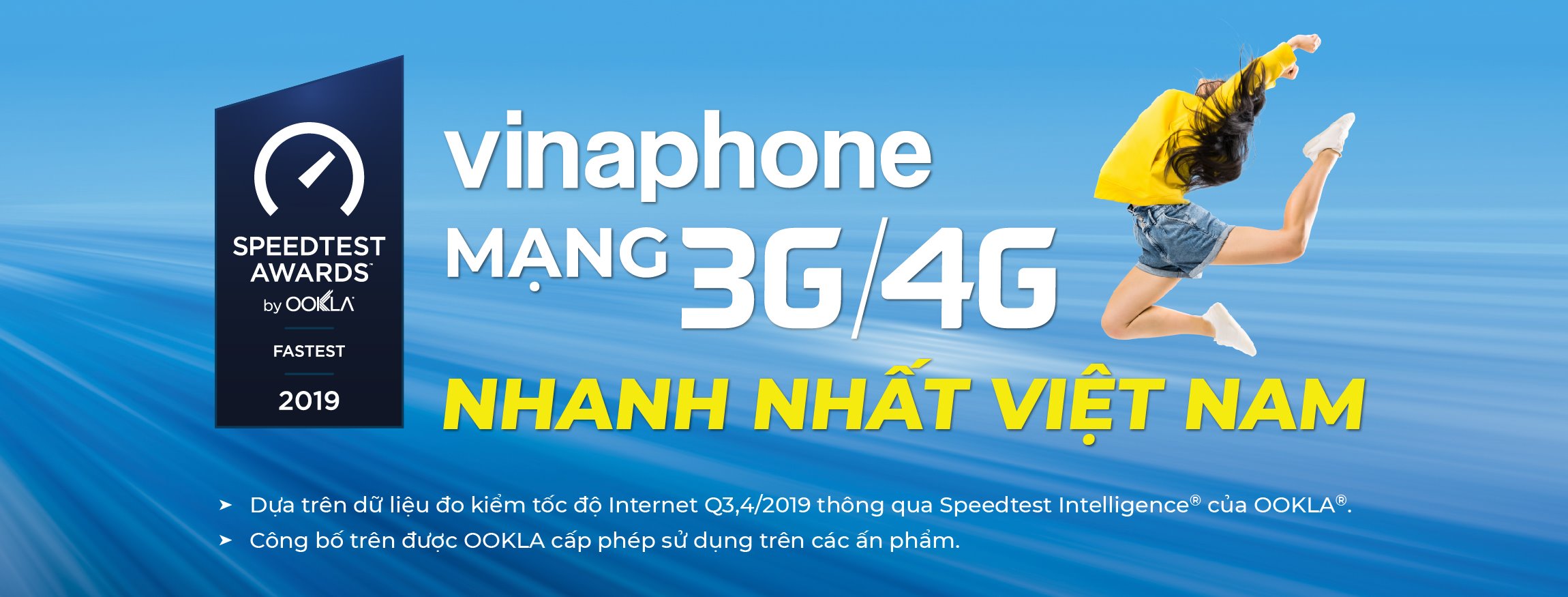 Danh hiệu nhà mạng 3G/4G nhanh nhất Việt Nam do Ookla, đơn vị uy tín về đo kiểm tốc độ Internet công bố, vừa được trao cho VinaPhone. Nhờ tốc độ vượt trội, đây là năm thứ 2 liên tiếp VinaPhone nhận được danh hiệu này.
