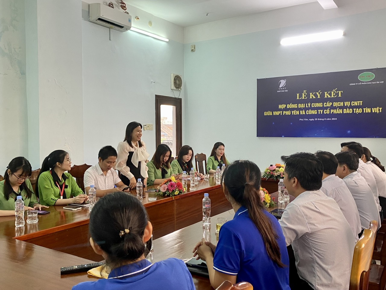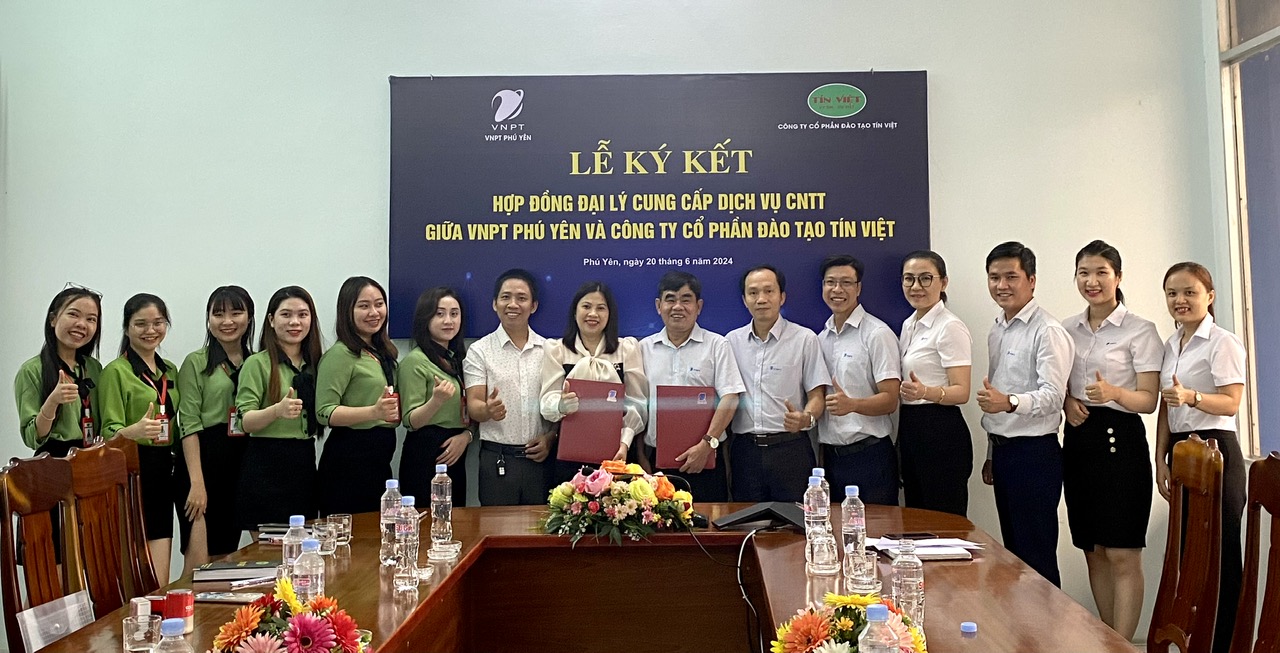 Vào sáng ngày 20/6/2024, Trung tâm kinh doanh VNPT - Phú Yên và Công ty Cổ phần Đào tạo Tín Việt đã chính thức ký kết Hợp đồng đại lý cung cấp dịch vụ công nghệ thông tin (CNTT). Sự kiện này đánh dấu một bước tiến quan trọng trong việc mở rộng kênh bán hàng, tìm kiếm khách hàng, phát triển các ứng dụng dịch vụ số cho các doanh nghiệp tại địa bàn tỉnh Phú Yên.